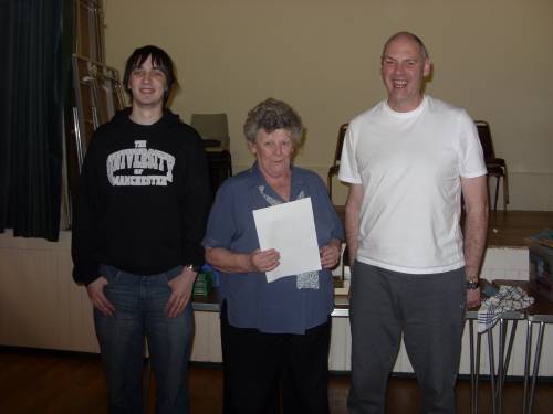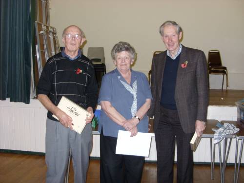 Thanks also to Stanley Blaiwais for directing and to Pat Buxton and Barbara Lewis for administration and general help. Martin Cantor presenting the trophy to Peter Ackrill and Harry Lowe Felicity Byrne (Michael's Aunt) and Sigrid Brown - second Shaun and Luke Webb - third Eric Bell and Donald Armitage - fourth Marge